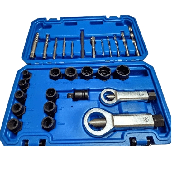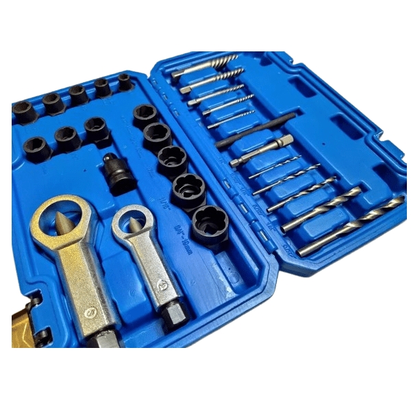 Ez a professzionális, 28 darabos csavarkihúzó készlet a tökéletes megoldás a sérült, berohadt vagy eltört csavarok és anyák eltávolítására. A különböző méretű kihúzók, adapter és kobalt fúrók széleskörű felhasználást biztosítanak, így bármilyen csavarral megbirkózhatsz.