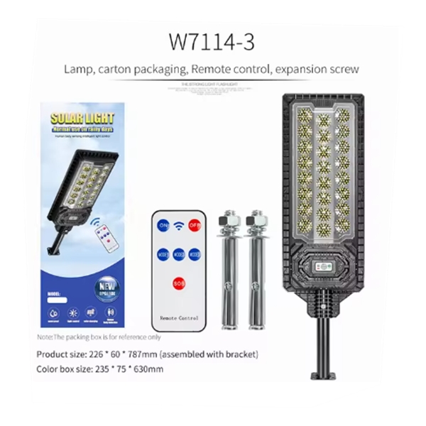 W7114-3 Mozgásérzékelős Napelemes Utcai Lámpa 888 Fehér LED-del és Távirányítóval, IP66