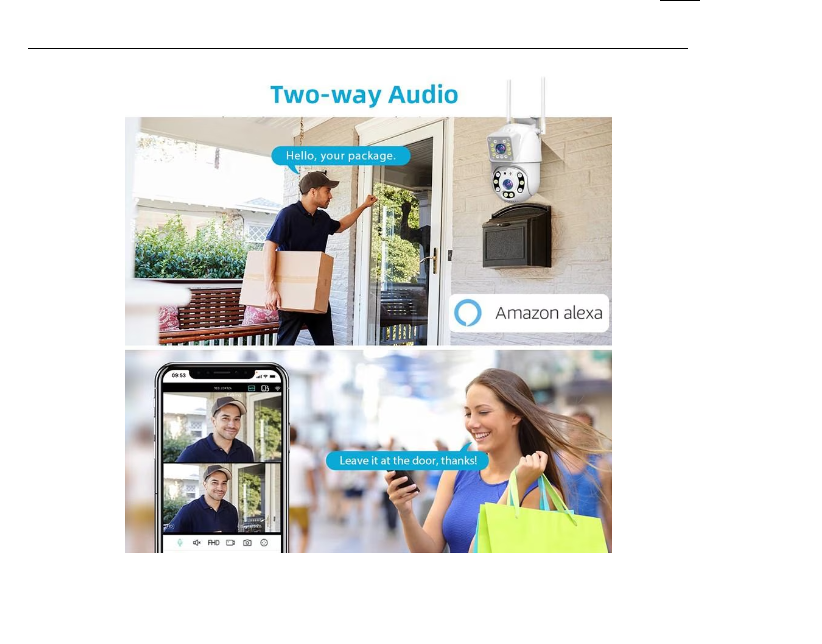 - Kétirányú kommunikáció: A beépített mikrofon és hangszóró lehetővé teszi a kommunikációt a kamera közelében tartózkodókkal.