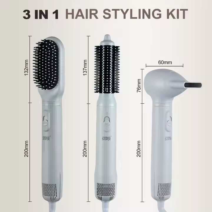 A Winning Star ST-8531 3 az 1-ben hajszárító / hajformázó egy praktikus eszköz, amely egyesíti a hajszárító, hajegyenesítő és hajformázó funkcióit. A cserélhető fejek sokoldalú felhasználást tesznek lehetővé a különböző frizurák elkészítéséhez. A 1000W-os teljesítmény és a túlmelegedés elleni védelem a hatékony és biztonságos használatot szolgálja. Kompakt kialakításának köszönhetően ideális otthoni használatra és utazáshoz is.