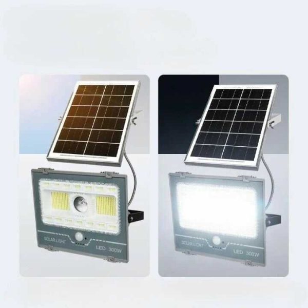 - Nagy teljesítmény (300W): A 300W-os teljesítményű LED biztosítja a terület erőteljes és széleskörű megvilágítását a sötétben.